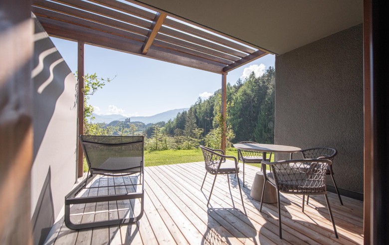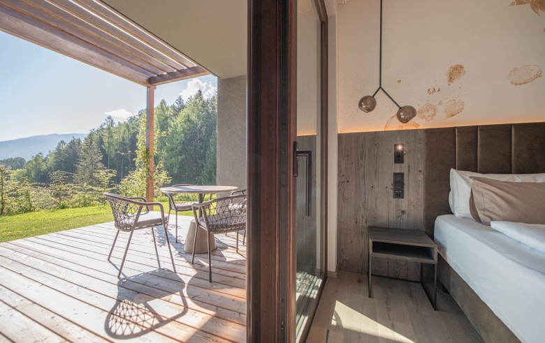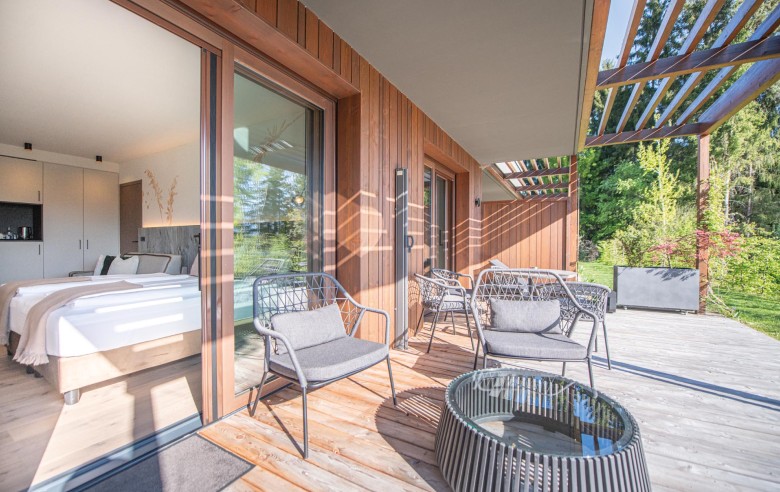 Ogni unità dispone di una terrazza privata affacciata sul giardino, un’oasi personale dove godere di pace e relax. All’interno, il comfort è totale: un perfetto equilibrio tra lusso e sostenibilità, per vivere la vacanza in modo autentico e immersi nella natura.